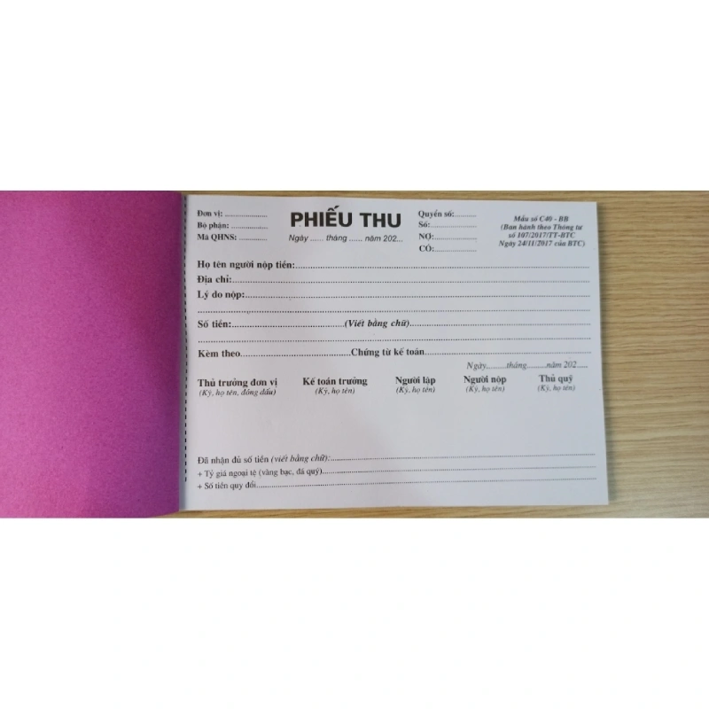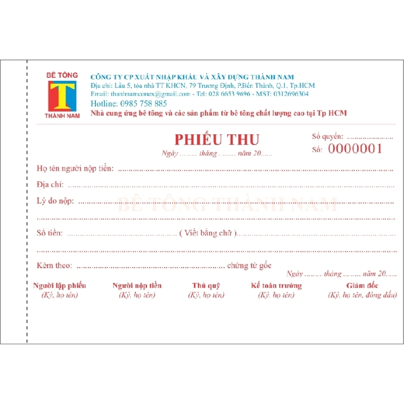 Phiếu thu 1 liên